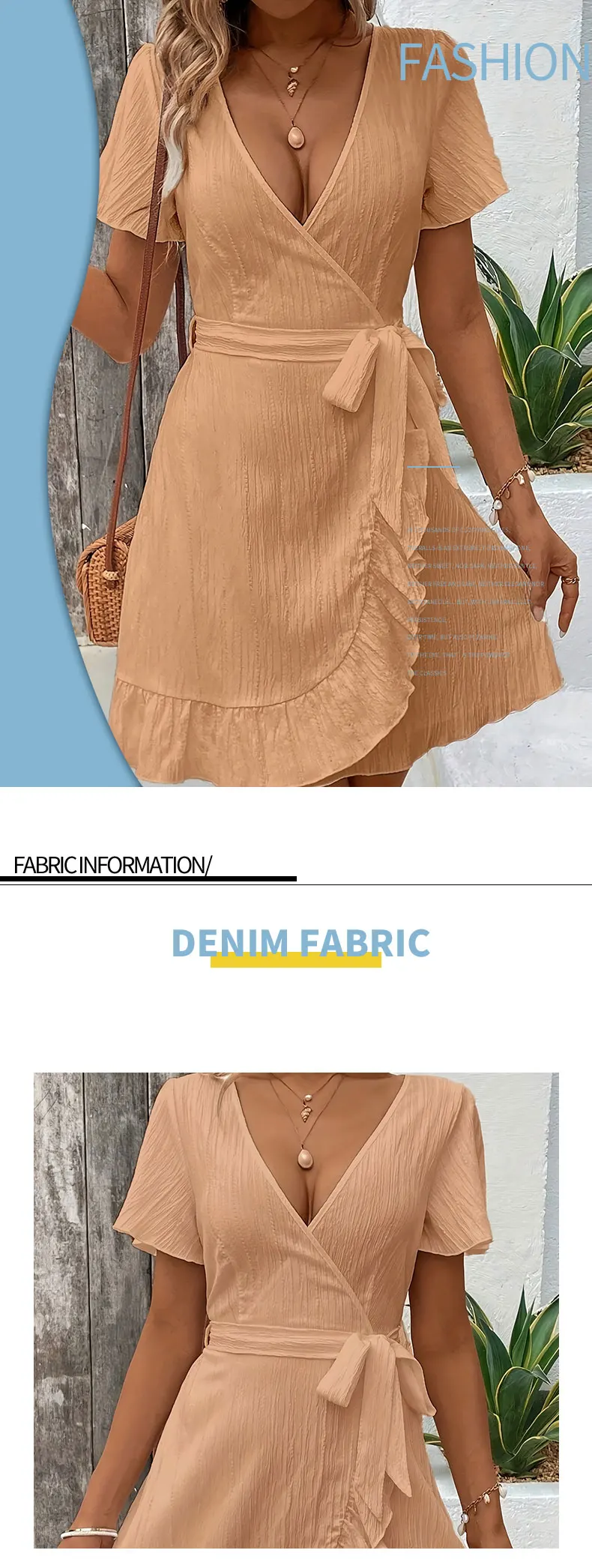 Confeccionado em poliéster leve, o vestido possui decote em V que alonga a silhueta e faixa (sash) para ajuste na cintura, trazendo charme extra ao look. Ideal para passeios, viagens, encontros casuais ou momentos de lazer no verão.